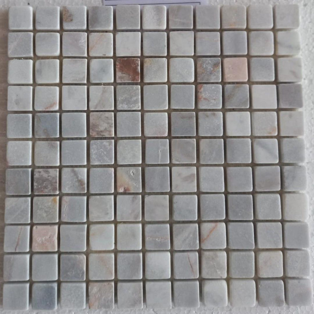 Elevate your space with the BIANCO VENUS Squares Tumbled Mosaic. Featuring 1"x1" natural stone tiles mounted on a 12"x12" mesh, this mosaic offers timeless elegance and easy installation. Its tumbled finish adds texture and charm, making it perfect for creating sophisticated backsplashes, showers, or accent walls that stand out with subtle beauty and durability.