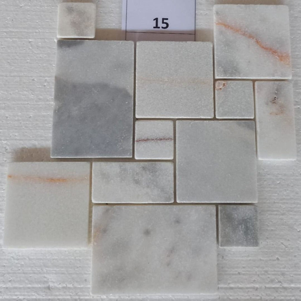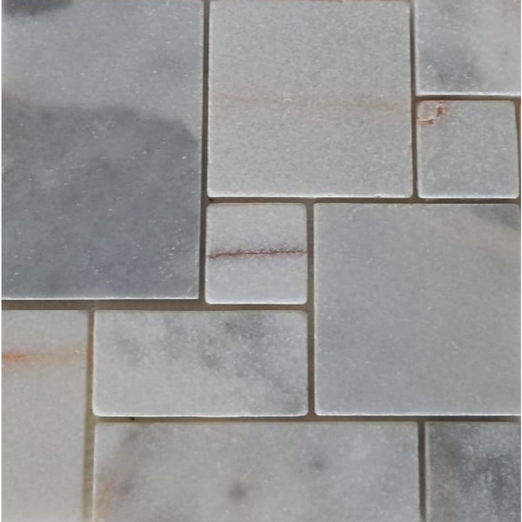 The BIANCO VENUS Pattern 12"x12" Tumbled Mosaic offers a warm, textured appeal with its softly tumbled finish and subtle ashlar pattern. Its natural tones bring depth and character, making it an excellent choice for adding a welcoming, timeless look to walls or backsplashes. Durable and stylish, this mosaic enhances any space with effortless charm and durability.