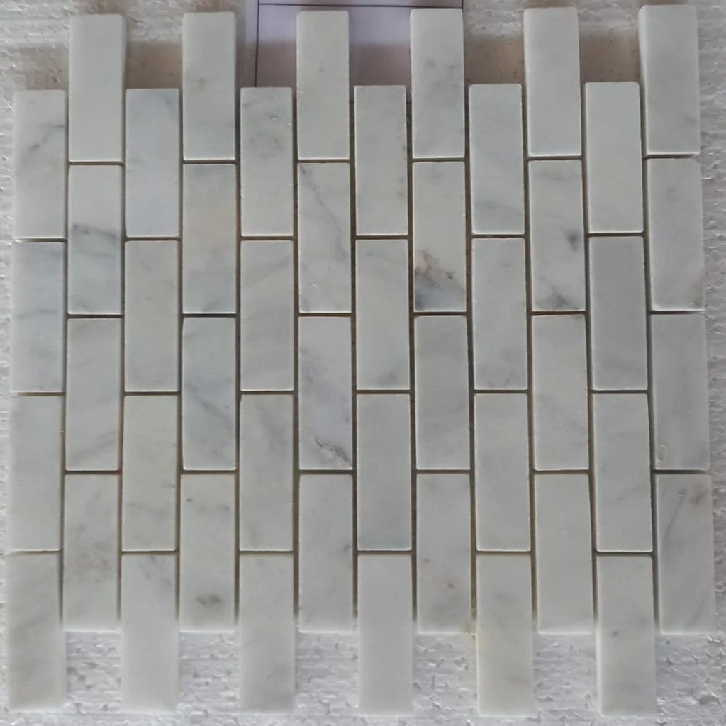 Elevate your space with the BIanco White BRICK Mosaic 1"x3" tiles meticulously arranged on a 12"x12" mesh for easy installation. Its polished finish adds a radiant shine that enhances any room, making it perfect for backsplashes, showers, or accent walls. Designed for both style and durability, this mosaic blends timeless elegance with modern sophistication to create a stunning, easy-to-clean surface that transforms your environment effortlessly.