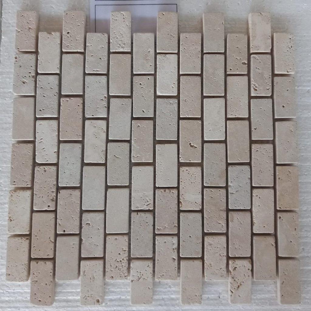 Elevate your space with the timeless charm of the Travertine Beige Brick Mosaic. Measuring 1" x 2" on a convenient 12" x 12" mesh backing, this tumbled mosaic combines durability with natural elegance. Its warm beige tones create a versatile backdrop perfect for kitchens, bathrooms, or accent walls, adding both texture and sophistication effortlessly. Easy to install, it transforms ordinary surfaces into inviting, stylish focal points that stand the test of time.