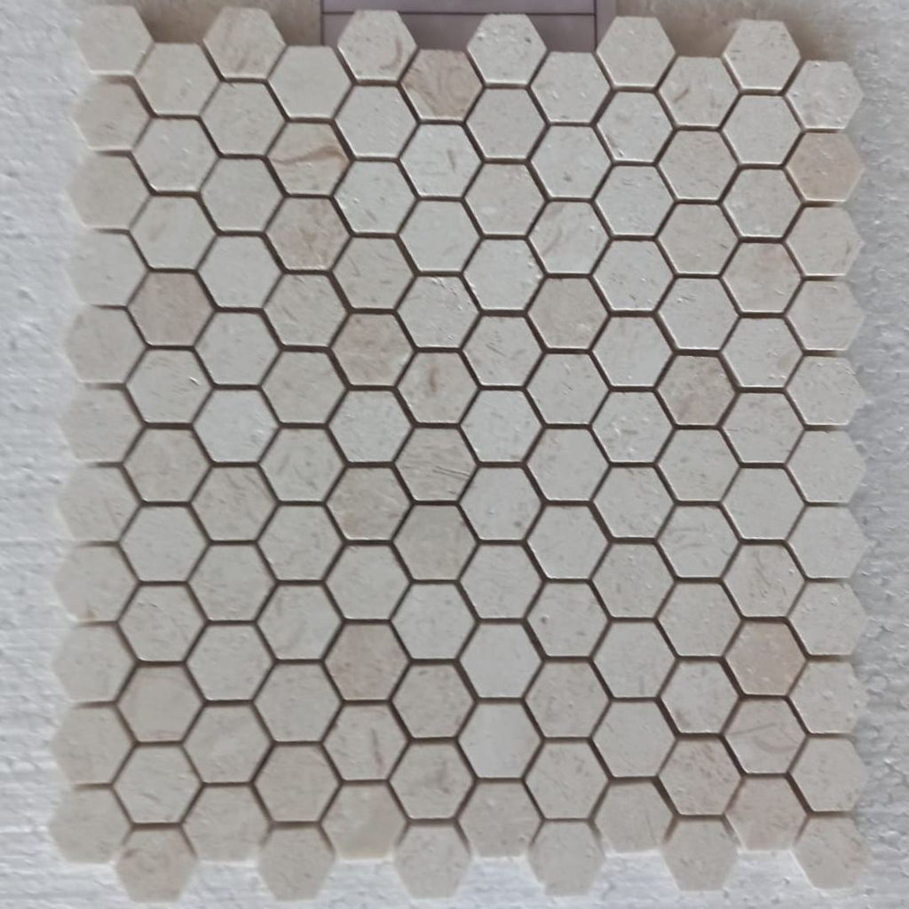 Add subtle sophistication to your space with the LYMRA, HEXAGON MINI 1X1 Honed Mosaic. Its soft, neutral tones and smooth honed finish create a calming and elegant look, perfect for both floors and walls. The smaller hexagon pattern adds intricate detail and texture, enhancing your design with timeless charm. Durable and easy to maintain, this mosaic tile effortlessly blends style and practicality for a refined finish in any room.