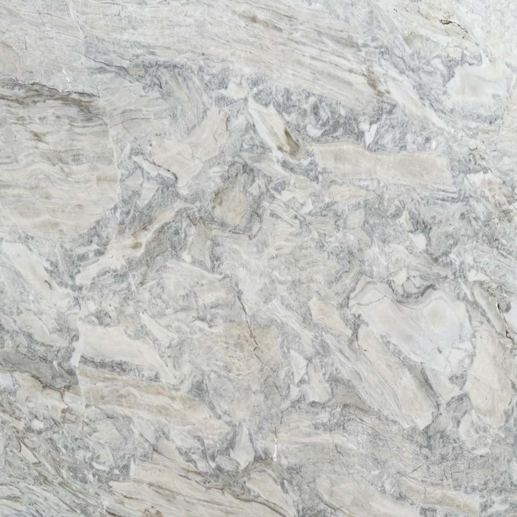 This sophisticated quartzite slab blends soft shades of white, beige, and gray, featuring organic movement and natural veining that create a rich, layered texture. The stone’s delicate transitions add depth and elegance, resulting in a timeless and versatile look that is ideal for projects seeking a balance of sophistication, natural beauty, and exclusivity.